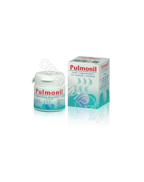 Maść rozgrzewająca do wcierań i inhalacji na bazie naturalnych olejków aromaterapeutycznych dla dorosłych i dzieci powyżej 6 lat.Pulmonil - do nacierania w bólach mięśni, stawów, nerwobólach oraz przy pierwszych objawach infekcji grypowych, przeziębieniach i przemarznięciach.Pulmonil - do inhalacji przy katarze i kaszlu towarzyszących infekcjom.